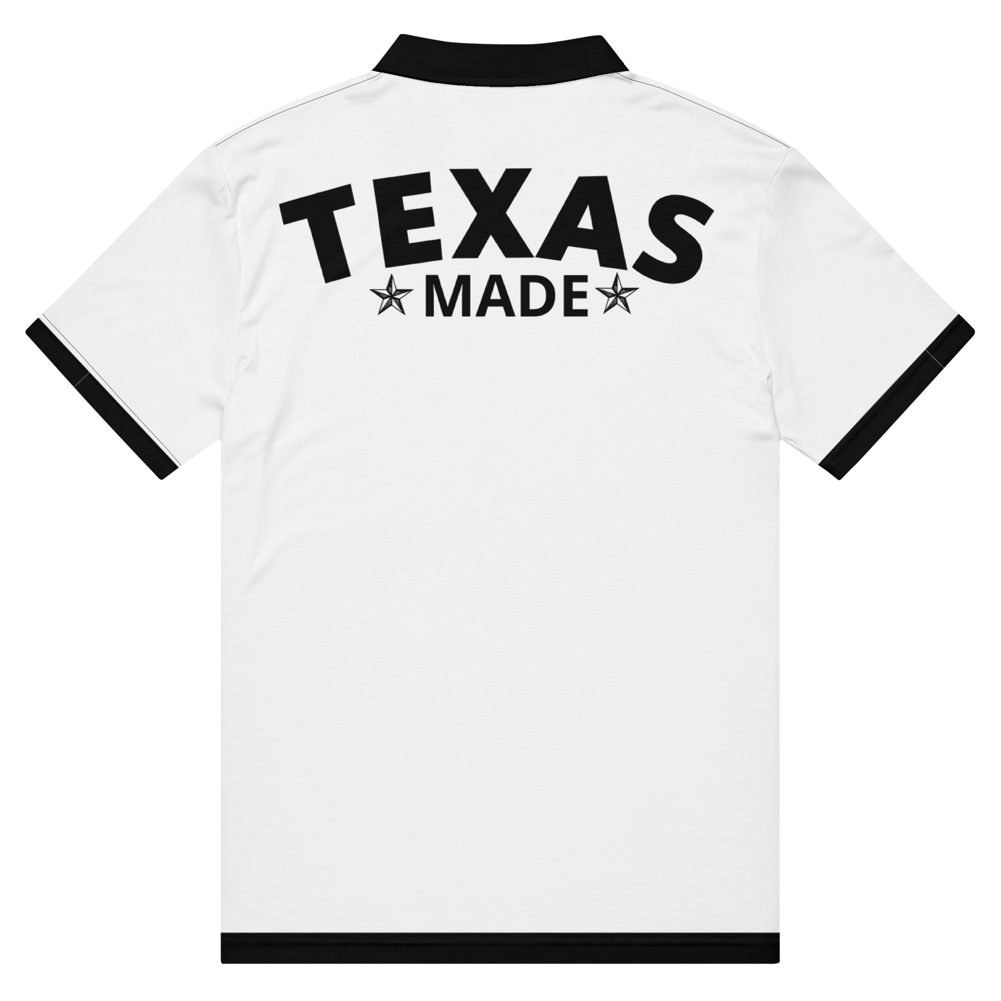 Texas style on the fairway with this premium polo shirt. Crafted from a performance blend of 90% polyester and 10% spandex, it delivers comfort and flexibility for your best swing. The crisp white body contrasts beautifully with bold black collar and cuff sleeves, creating a sharp, polished look that commands respect at any course. Built for golfers who appreciate quality craftsmanship and timeless design, this "Texas Made" polo combines durability with sophisticated style—the perfect choice for those who refuse to compromise on either.
